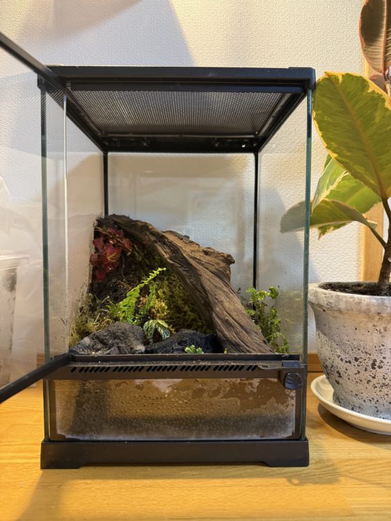 夏からカエルを飼い始めて、ずっとプラスチックケースで飼っているのが可哀想だなと思い、