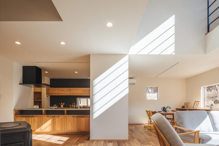 吹き抜けからは、明るい光がキッチンに差し込みます。