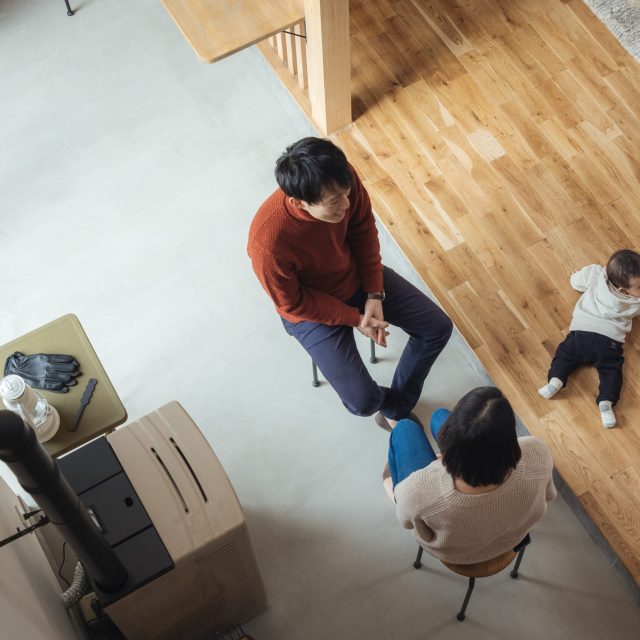 暖炉を囲む富士山麓の二世帯住宅