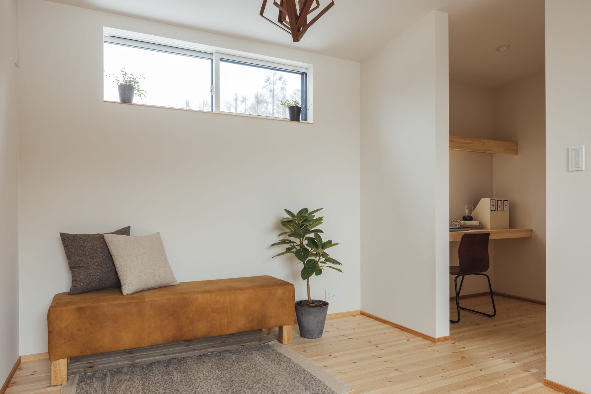 木格子にはカウンターが付いていて、勉強やくつろぎスペースに