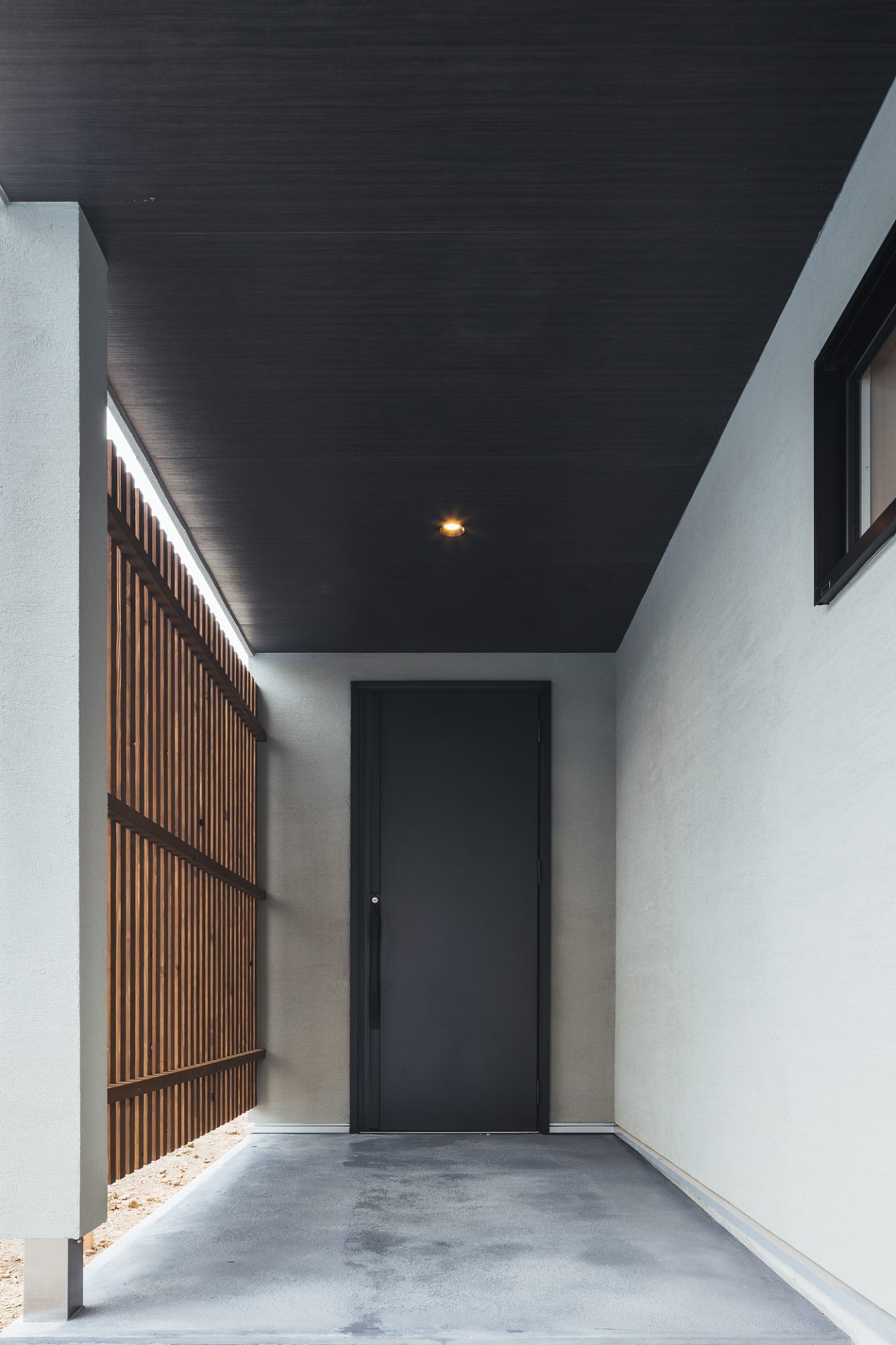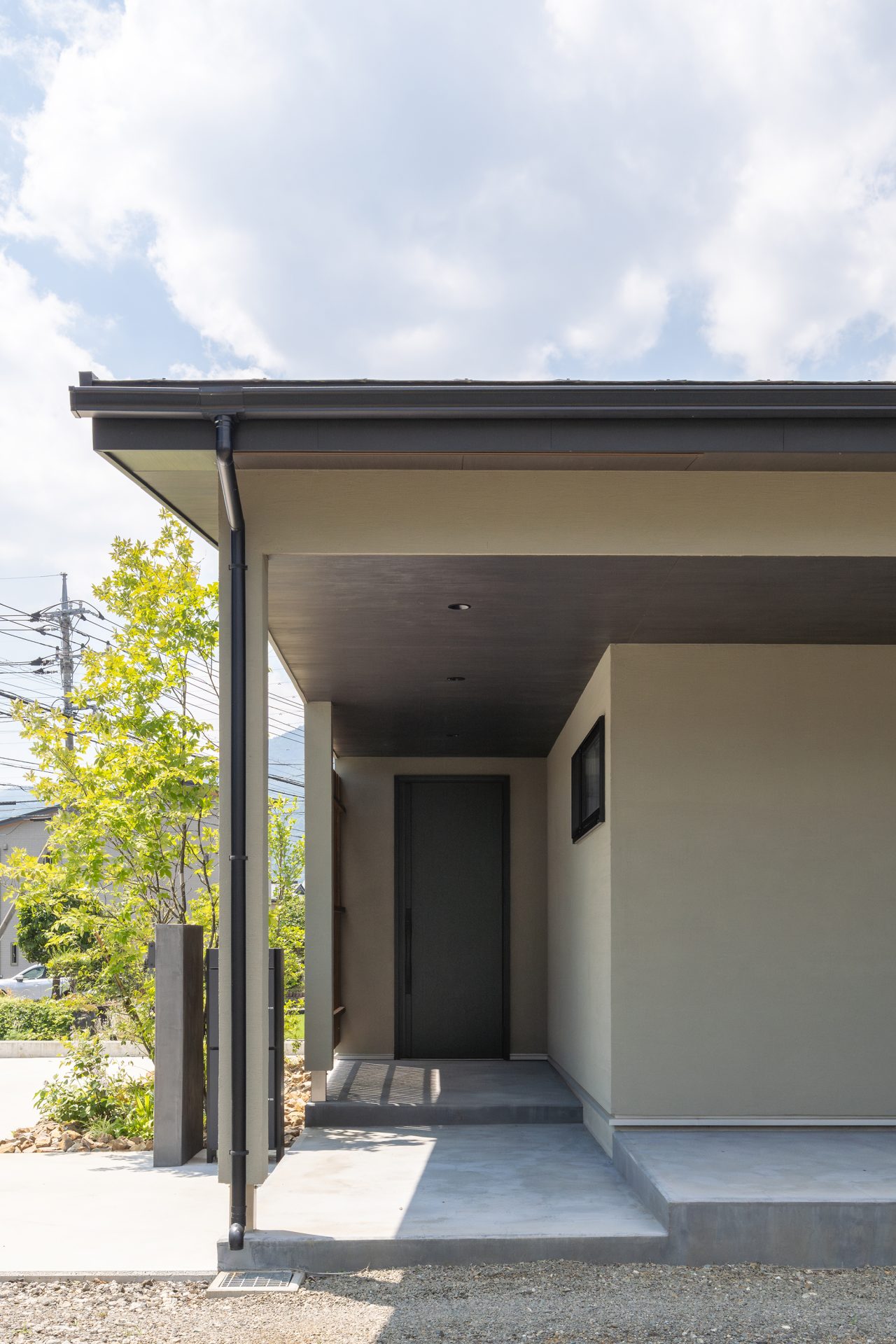 家事効率だけでなく心地よい空間のために、深い軒下テラスとプランの工夫により表通りの喧噪が気にならないようにしています。