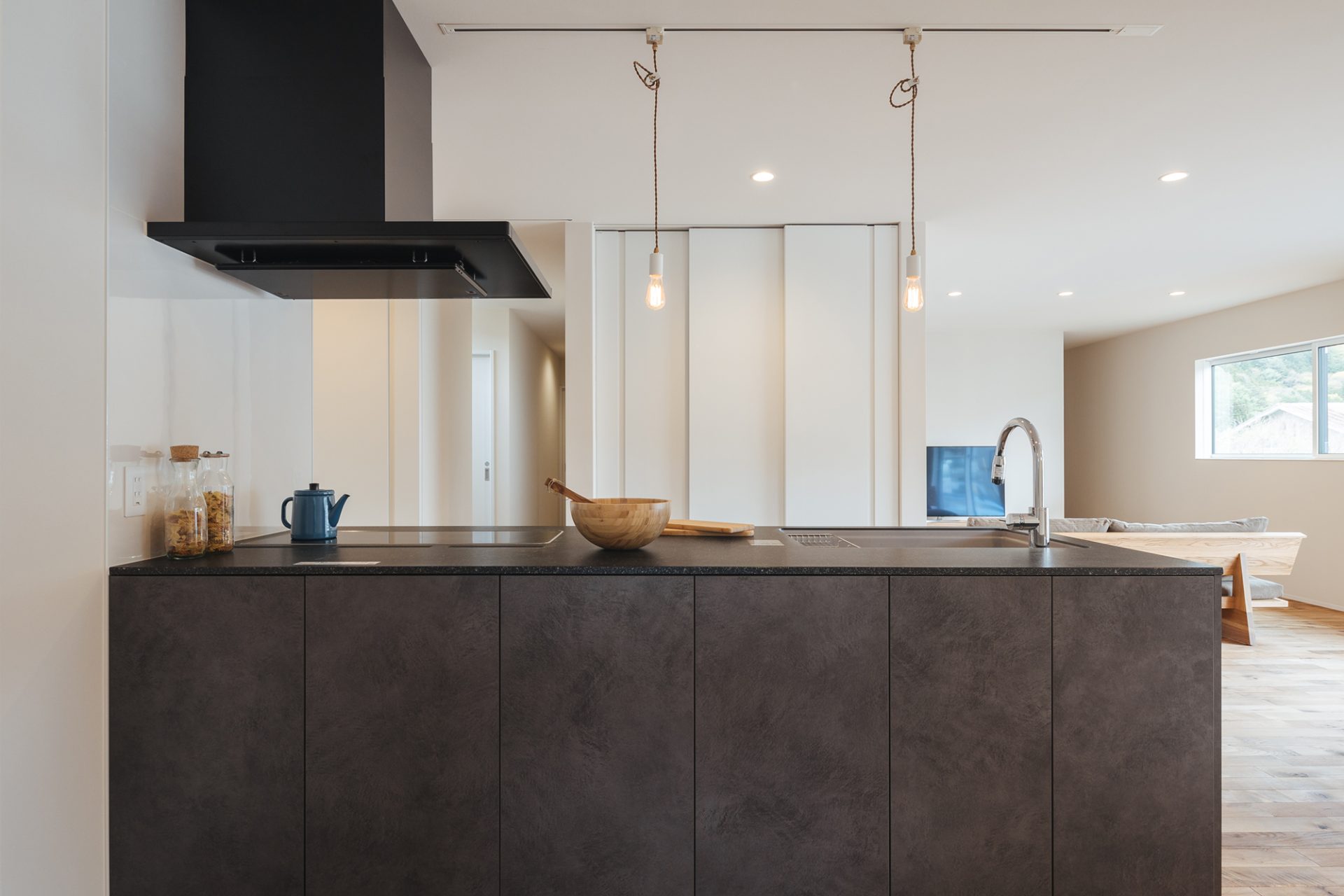 調理家電や食器は壁内にすっきり納めているため、いつも片付いたキッチンになります。