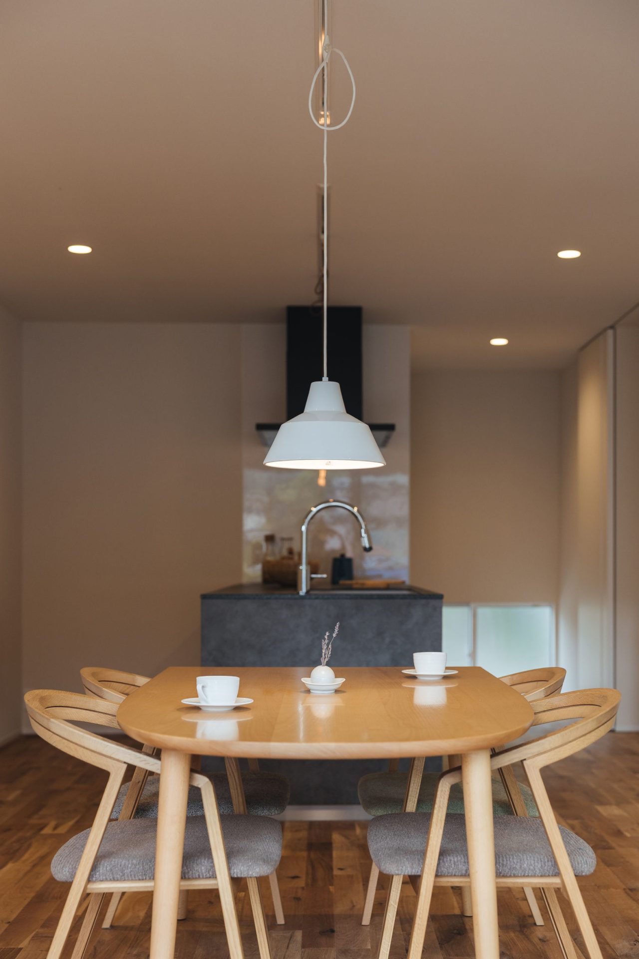 家の中心となるオープンキッチンは皆さまで作業台を囲んでお料理をしていただけます。