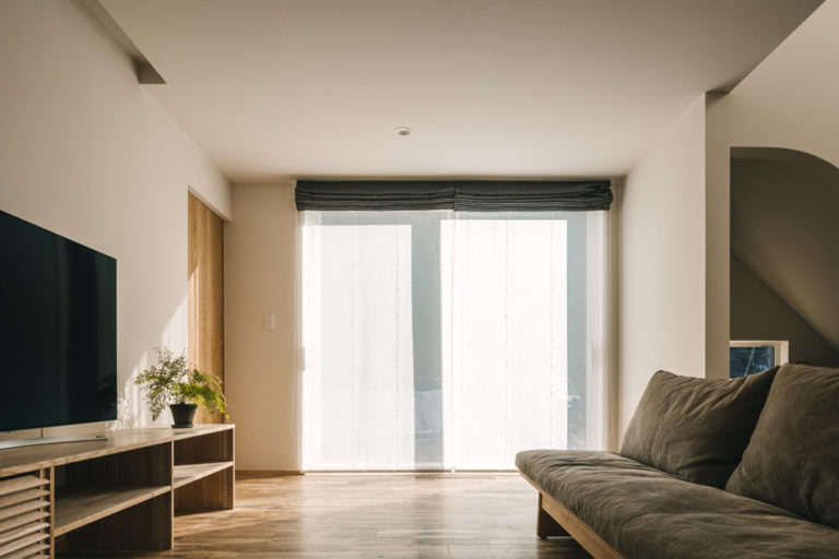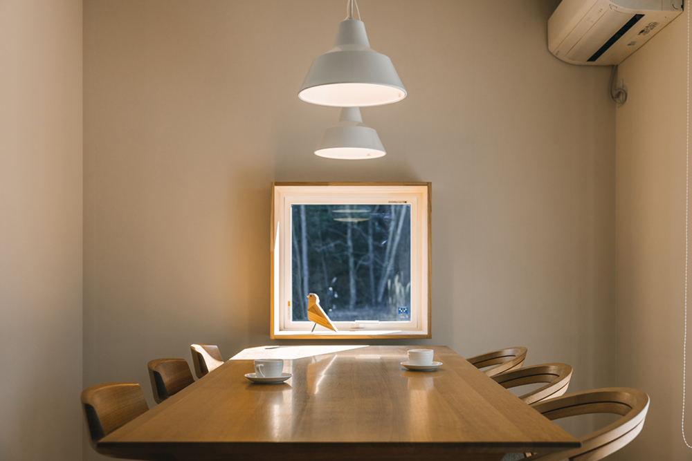 お家のくつろぐ空間からは、なるべく木々の緑を眺められるように窓や家具の配置を設計しました。