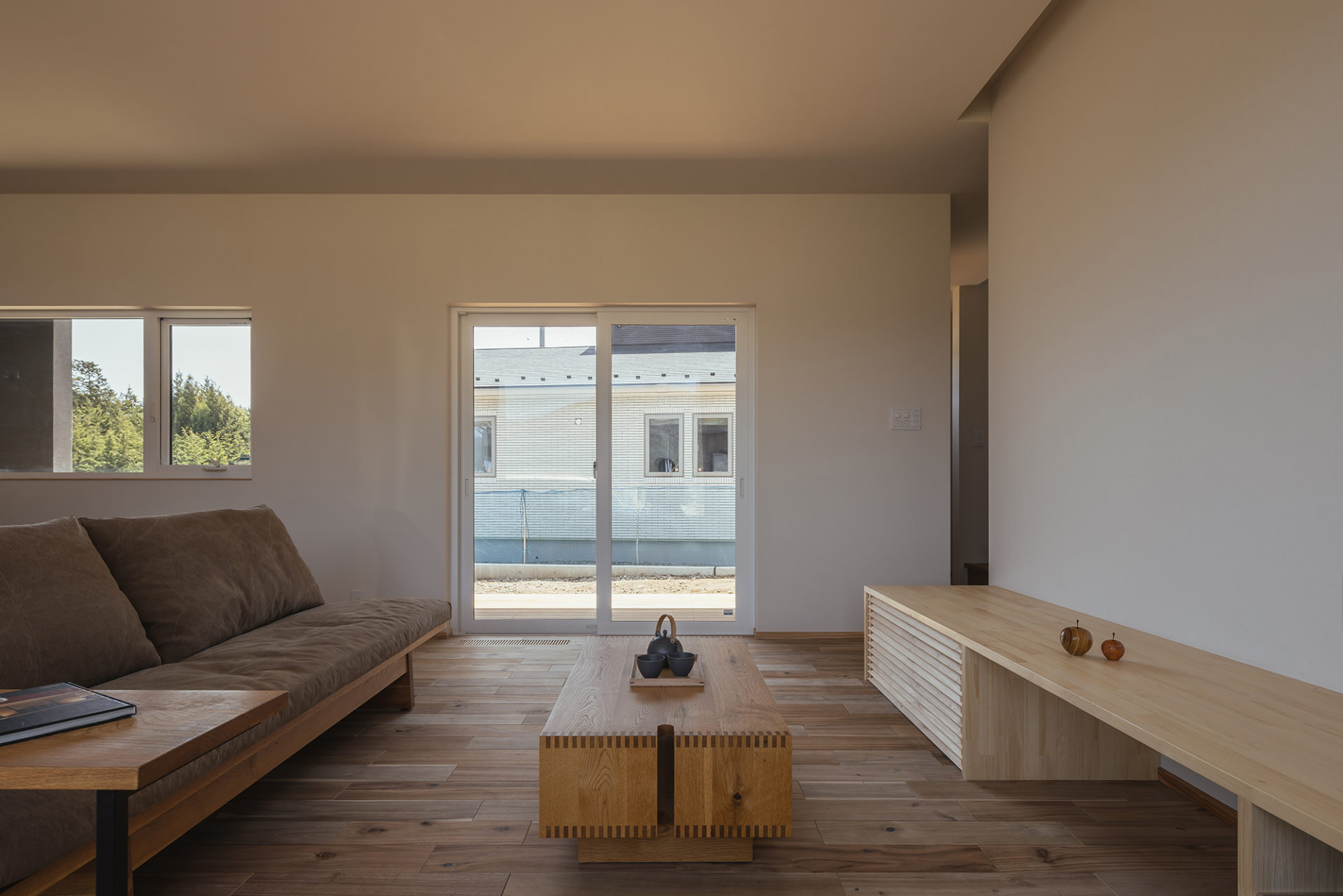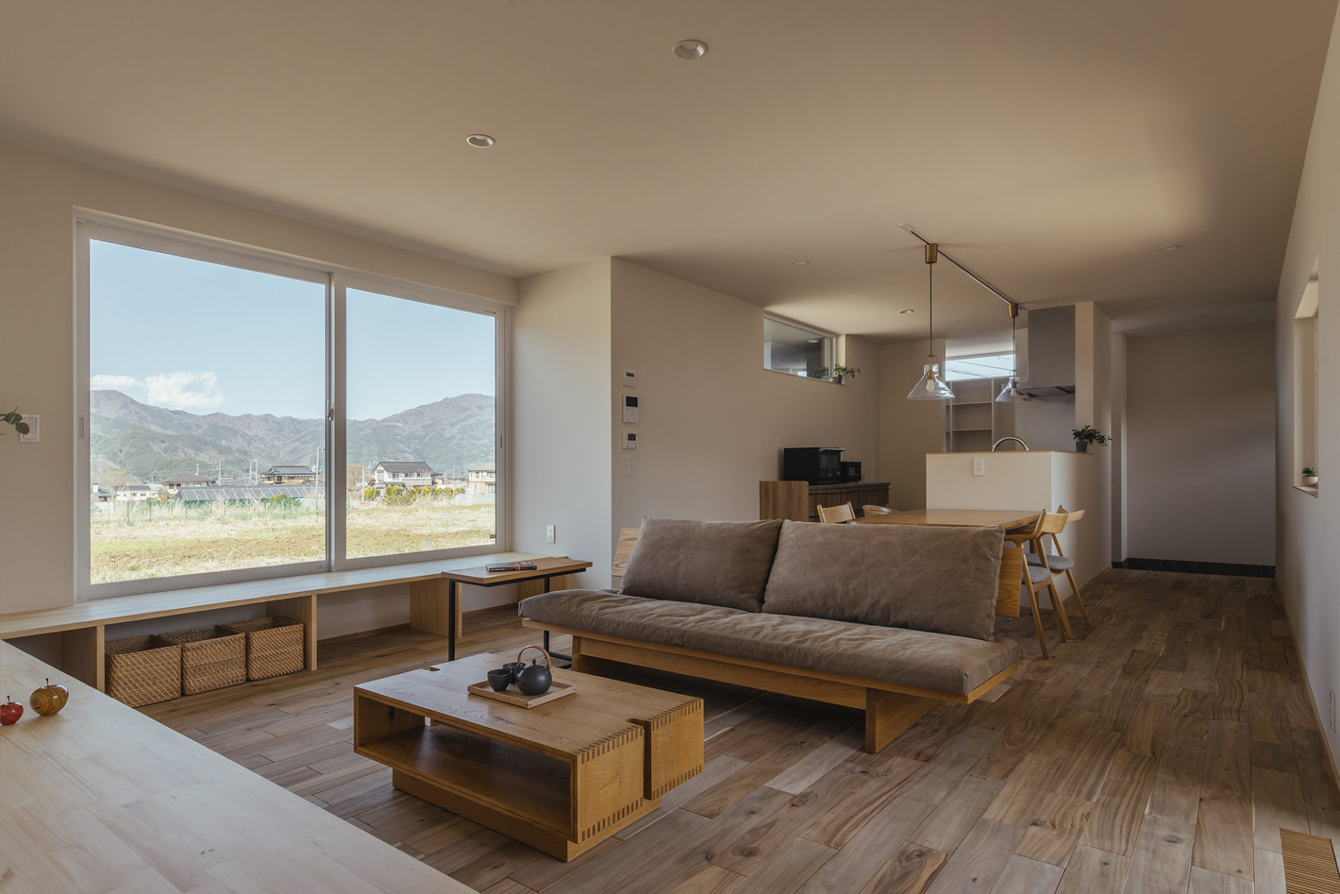 暮らしの中心となる居場所から、軒下空間や窓辺のベンチを通して、屋内と屋外が緩やかに繋がり一体感が生まれます。