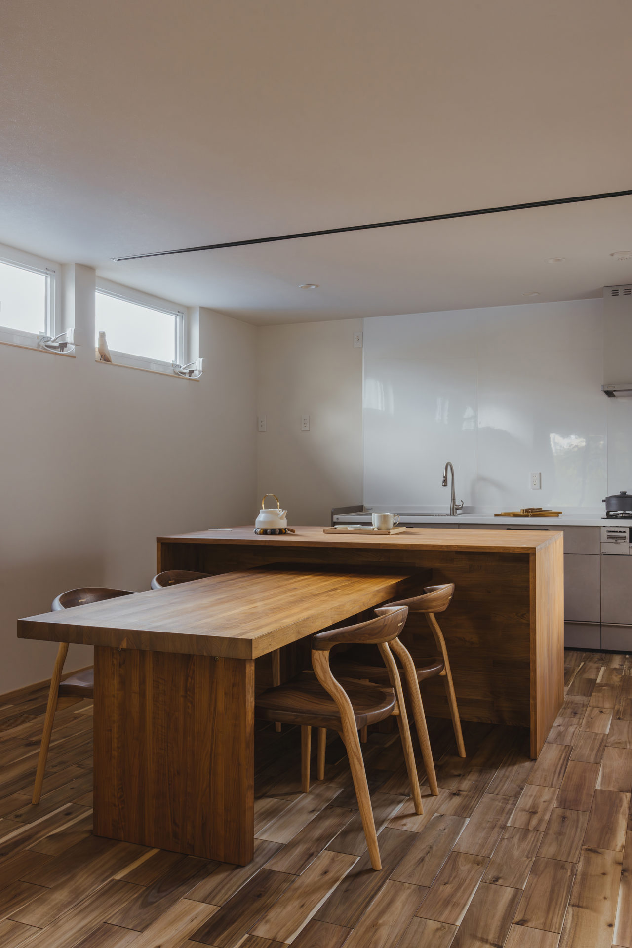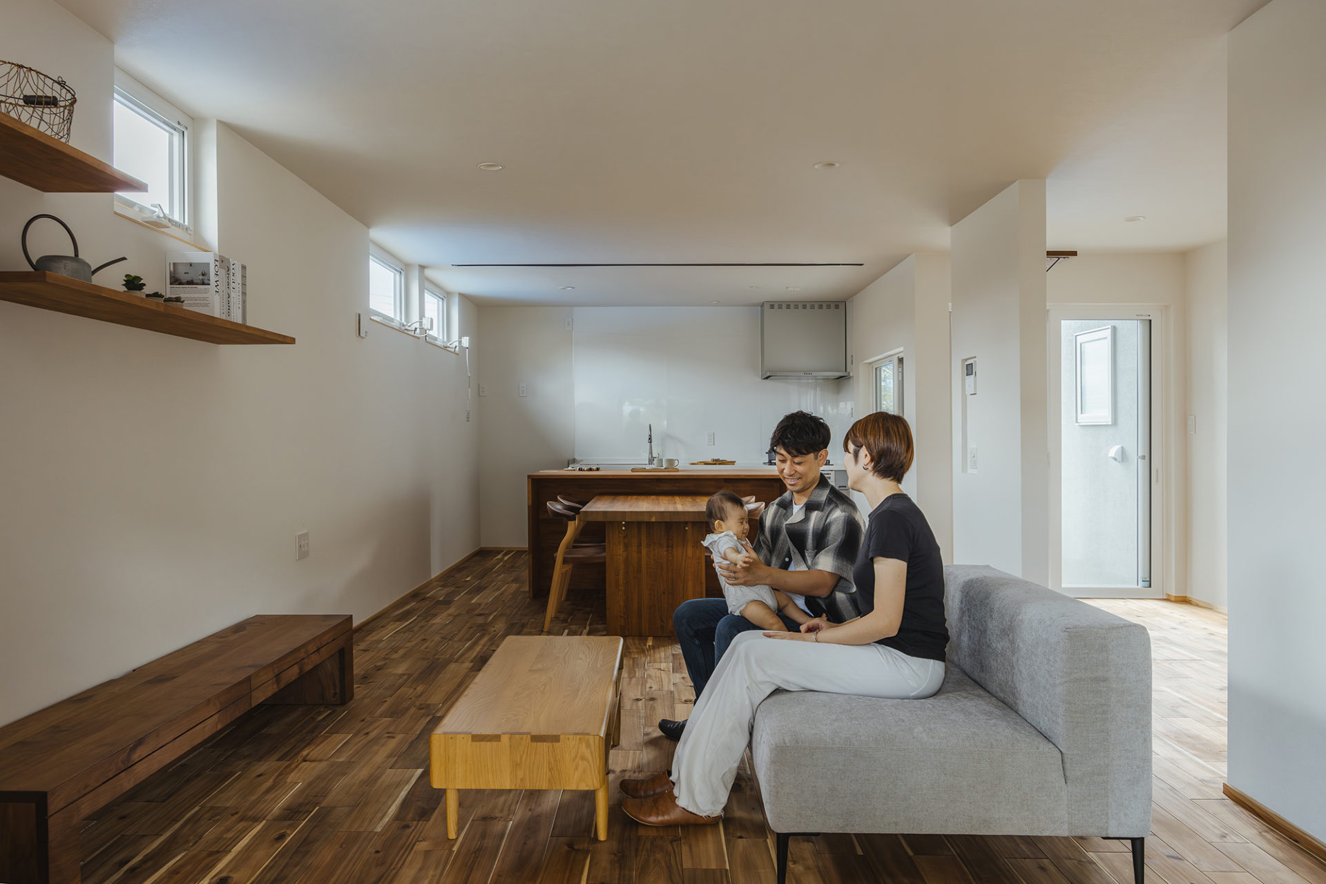 キッチンはオープンで最小限の装備であえてスッキリと見せました。