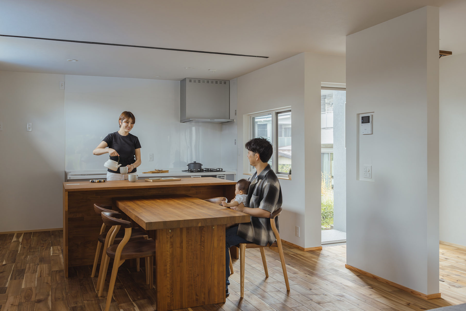 土間空間は庭との延長で使え、寒い日は外を感じながら部屋の中でくつろげます。