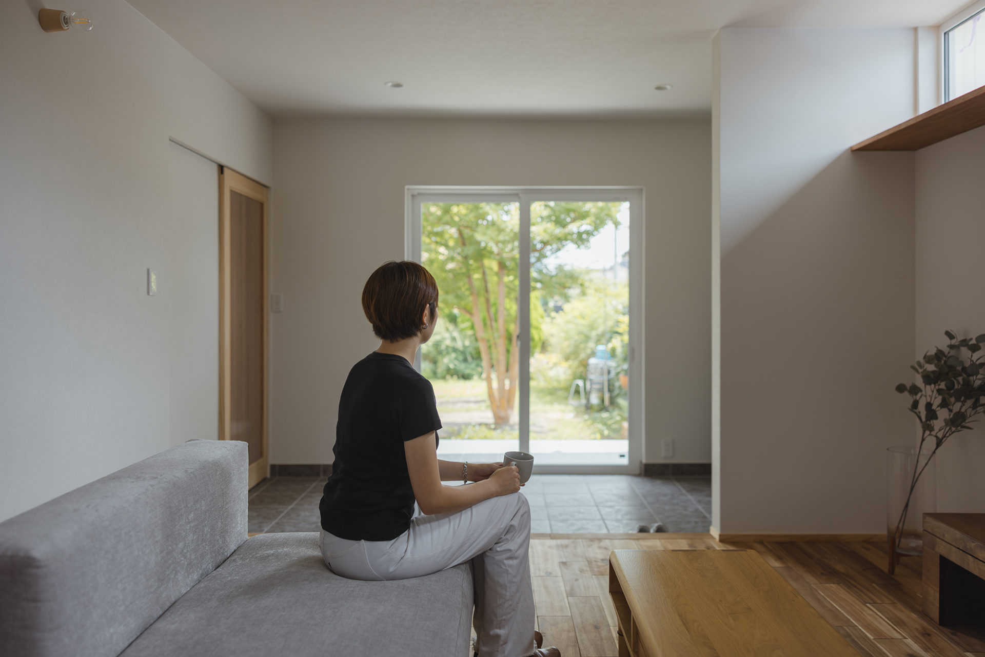 季節の移ろいを感じる庭の緑と、静かな時間がゆっくりと流れる家です。