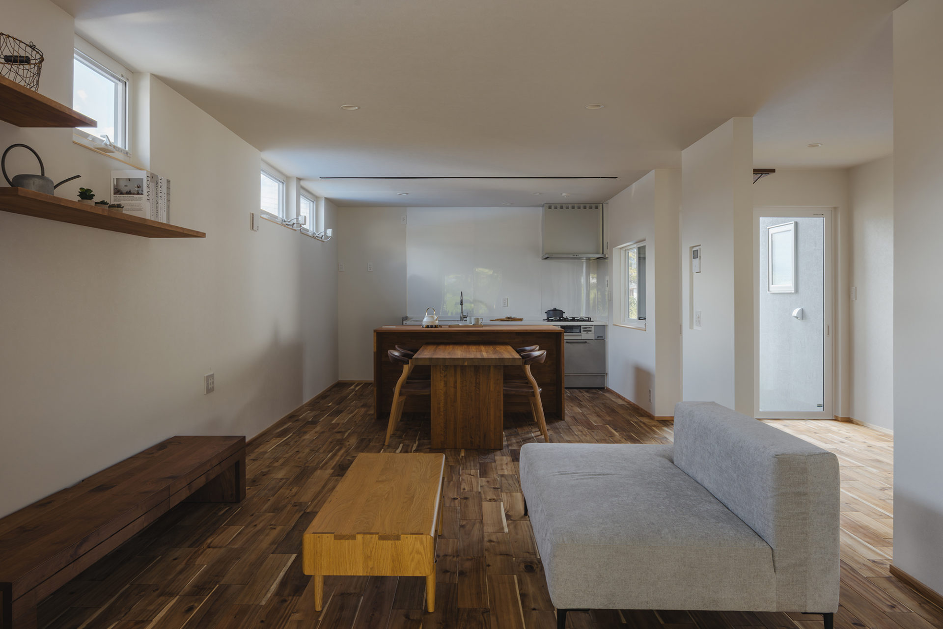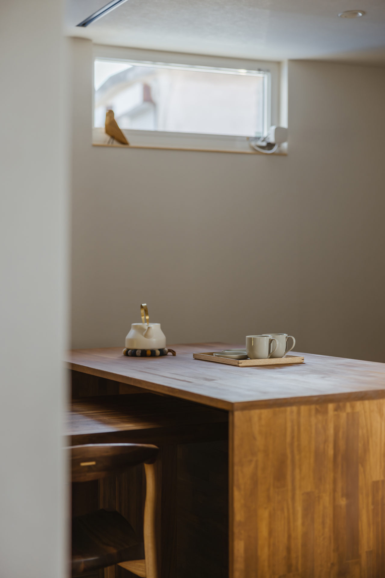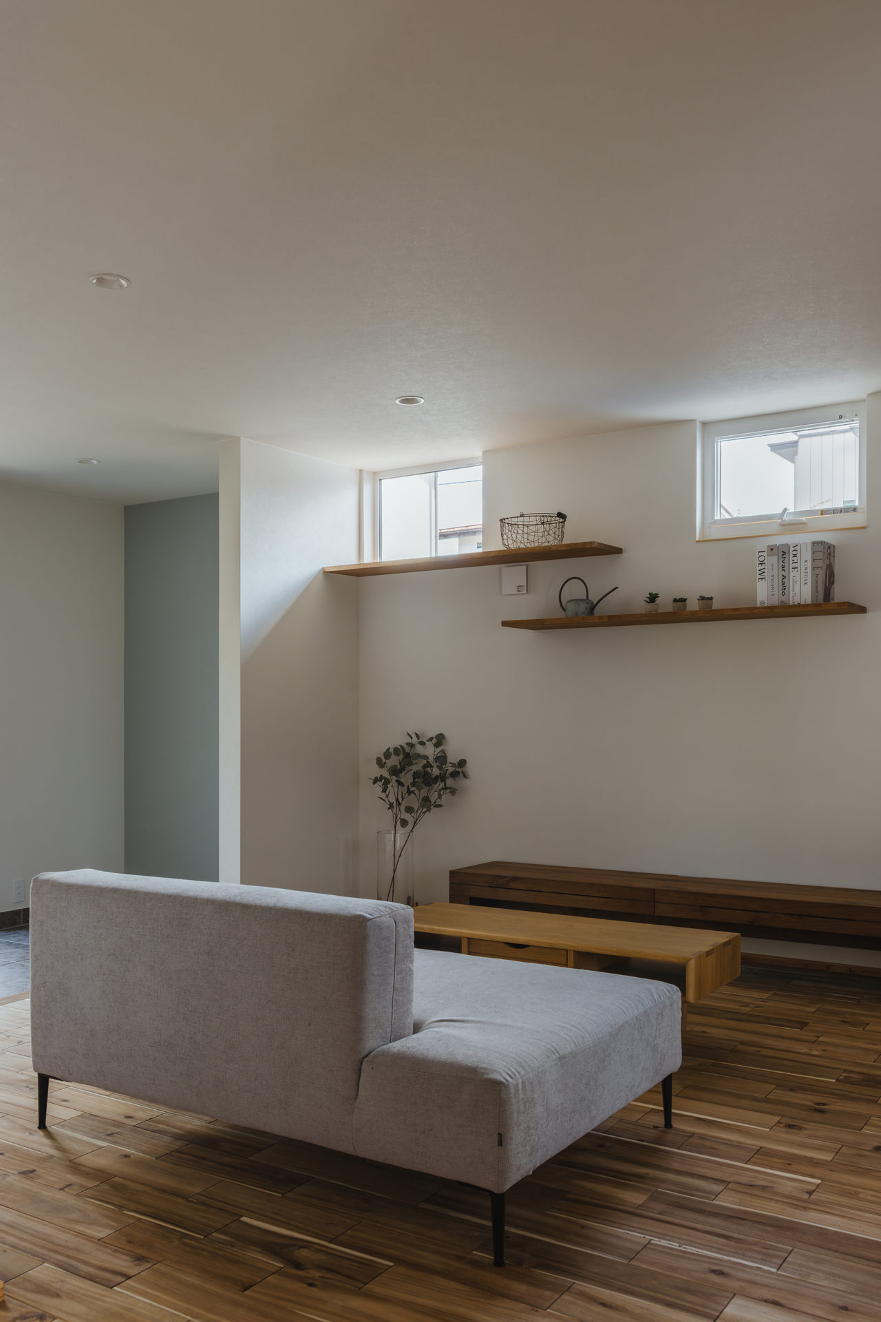 隣家が気になる方角には、上部に採光の窓を設けました。